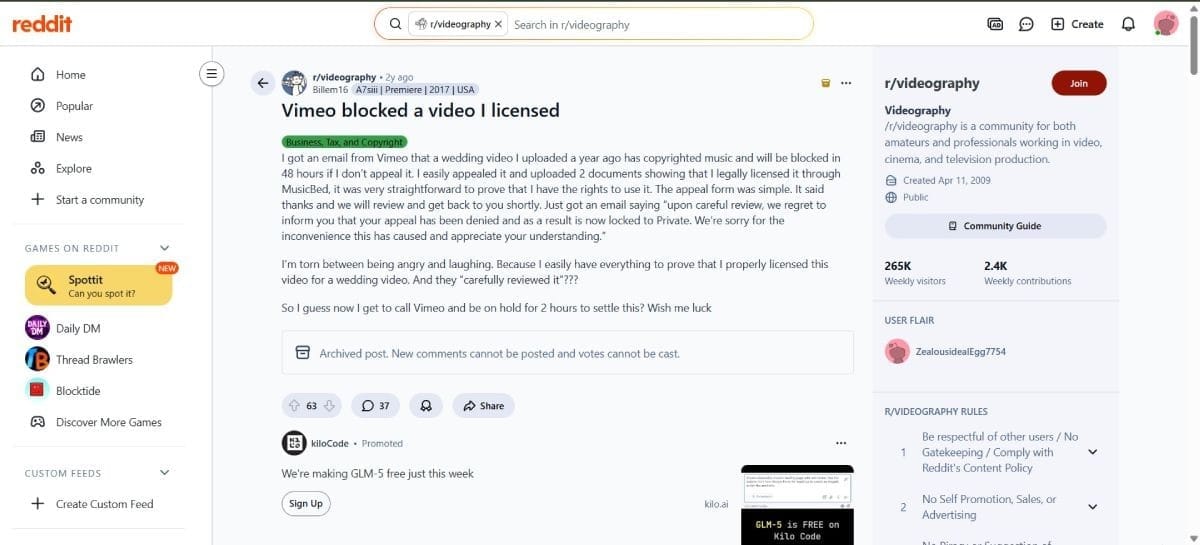 One videographer on Reddit described how a wedding film on Vimeo was suddenly flagged for copyright nearly a year after upload, even though the music had been properly licensed. They submitted proof, waited for a manual review, and still faced the risk of the video being blocked with only 48 hours’ notice.